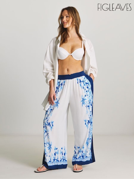 Figleaves Blue Lisbon Wide-Leg Beach Trousers