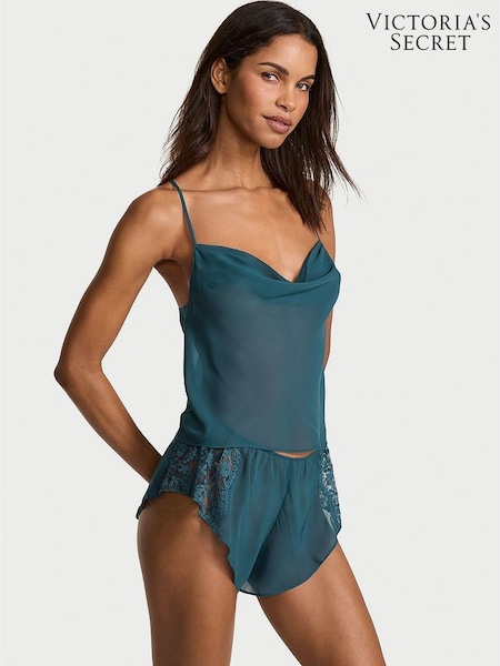 Victoria's Secret Teal Haze Blue Chiffon & Lace Open Back Flutter Cami Set