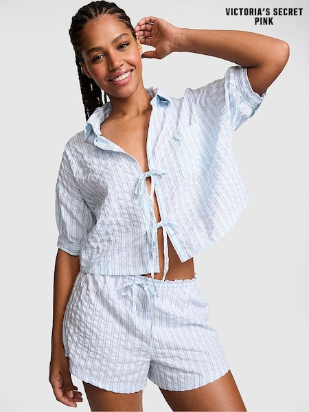 Victoria's Secret Pink Spray Blue Stripe Cotton Tie Front Pyjama Top