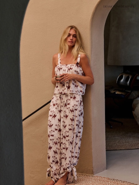 Daily by Desmond and Dempsey Cream/ Brown Camel Viscose Woven Cami Pyjamas Set