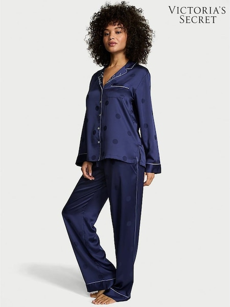 Victoria's Secret Ink Blue Satin Long Pyjamas Set