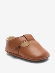 Designed by our experts with style and comfort in mind, these tan brown pram shoes are crafted from premium leather that is soft and durable. It comes with a T-bar design, with a touch and close fastening for easy fitting, finished with a flexible leather sole. Leather upper T-bar design Touch fastened straps Leather sole View the How to Measure and Fit at Home Guide Upper - Leather, Lining & Sock - Other Materials, Sole - Leather.