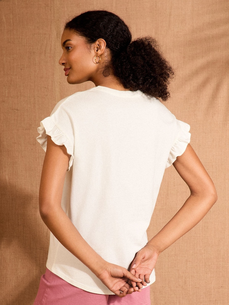 Love & Roses Ivory Fruit Embroidery Flutter Sleeve Jersey T-Shirt